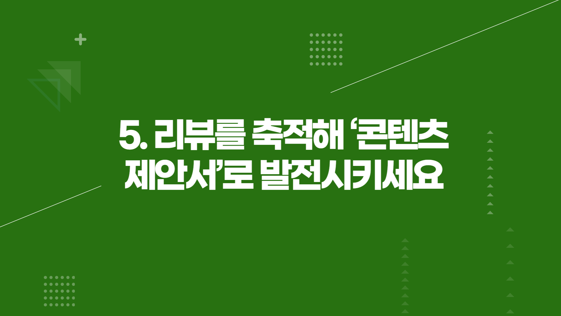 5. 리뷰를 축적해 ‘콘텐츠 제안서’로 발전시키세요