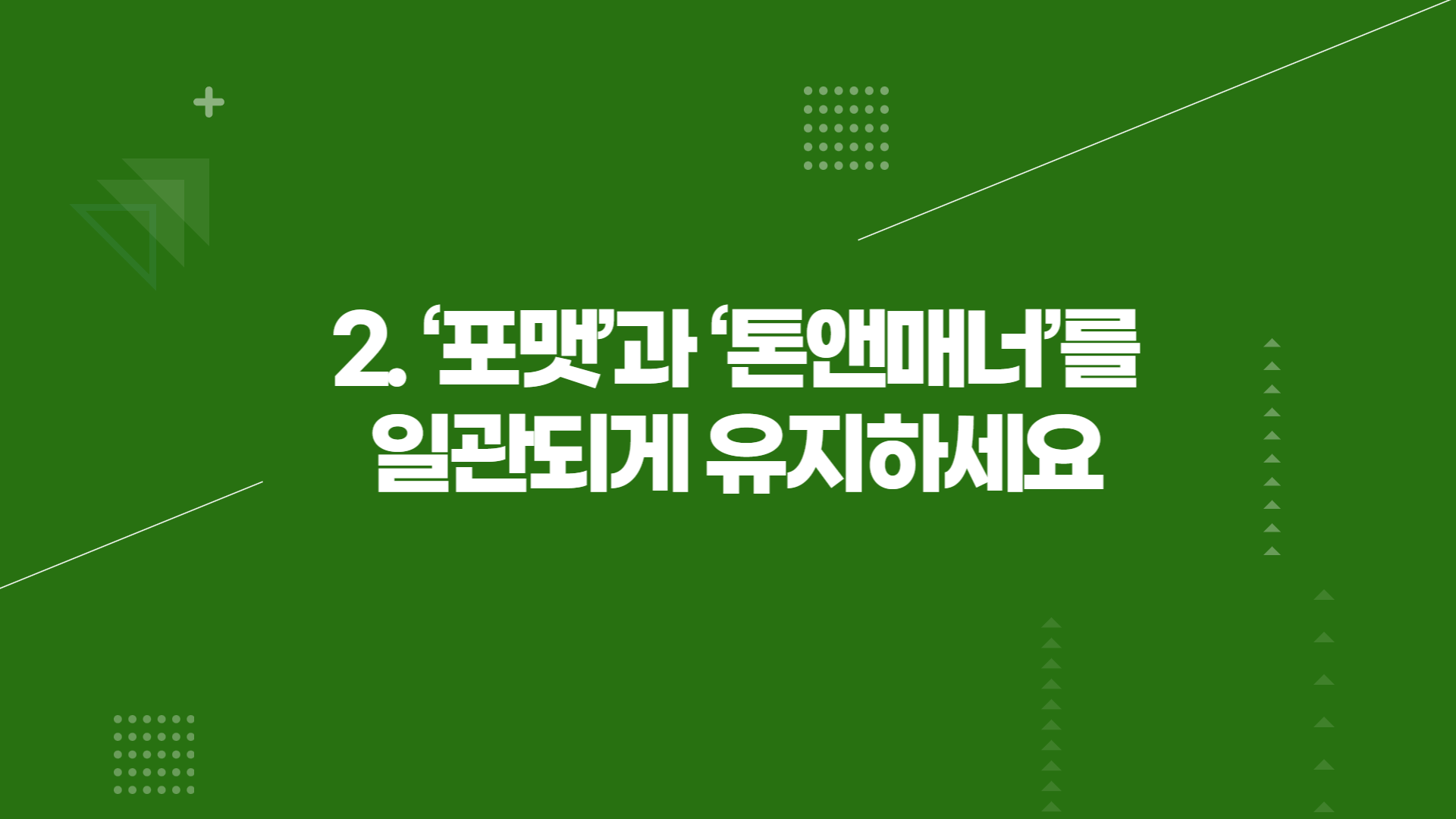 2. ‘포맷’과 ‘톤앤매너’를 일관되게 유지하세요