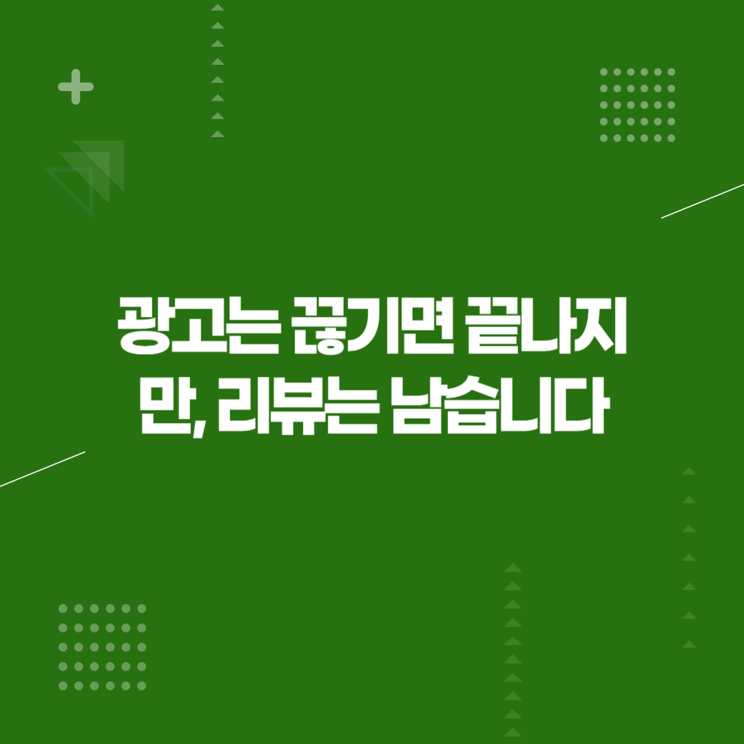 광고는 끊기면 끝나지만, 리뷰는 남습니다