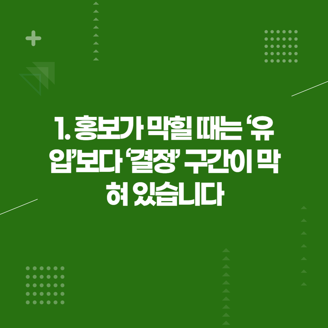 1. 홍보가 막힐 때는 ‘유입’보다 ‘결정’ 구간이 막혀 있습니다