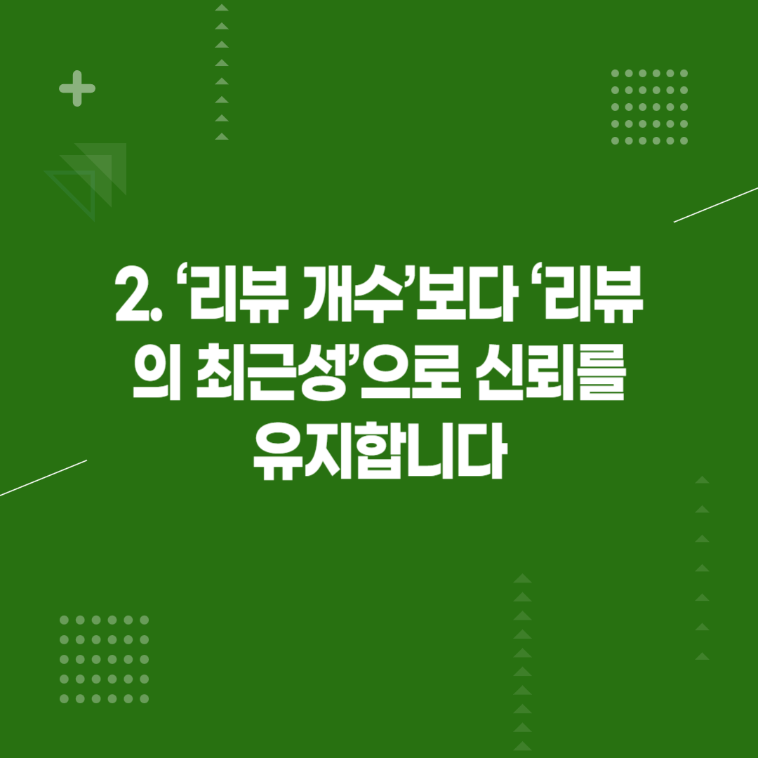 2. ‘리뷰 개수’보다 ‘리뷰의 최근성’으로 신뢰를 유지합니다