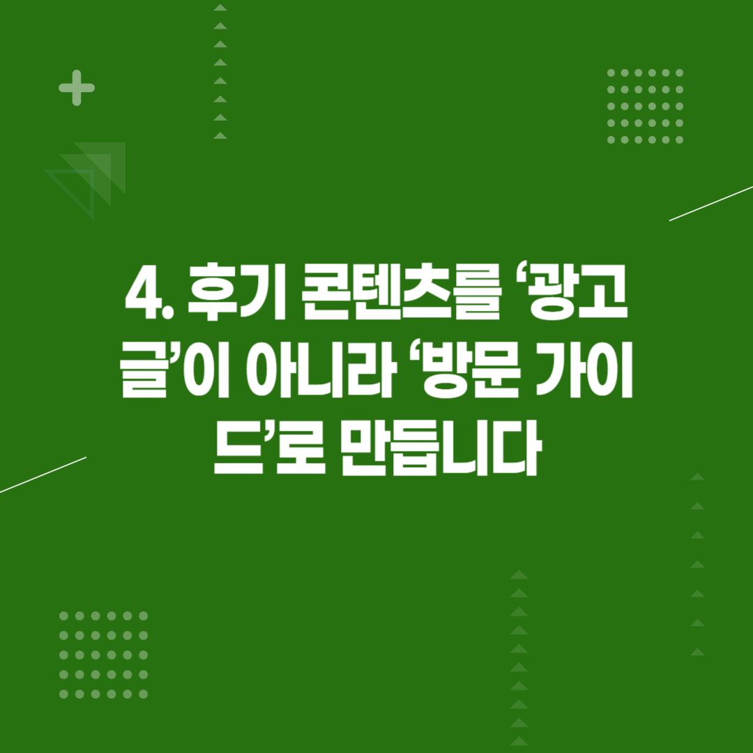 4. 후기 콘텐츠를 ‘광고글’이 아니라 ‘방문 가이드’로 만듭니다