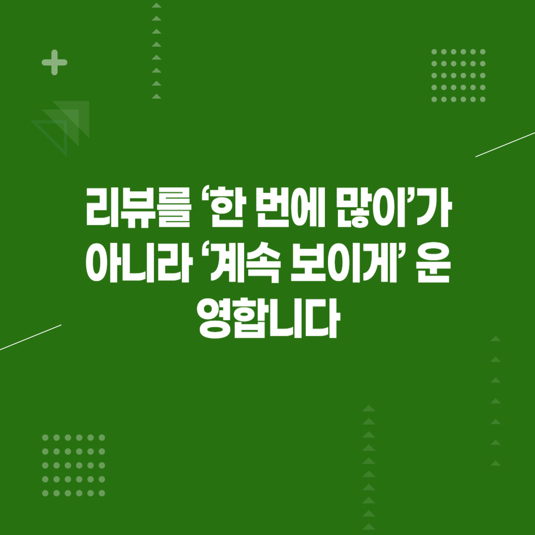 2. 리뷰를 ‘한 번에 많이’가 아니라 ‘계속 보이게’ 운영합니다
