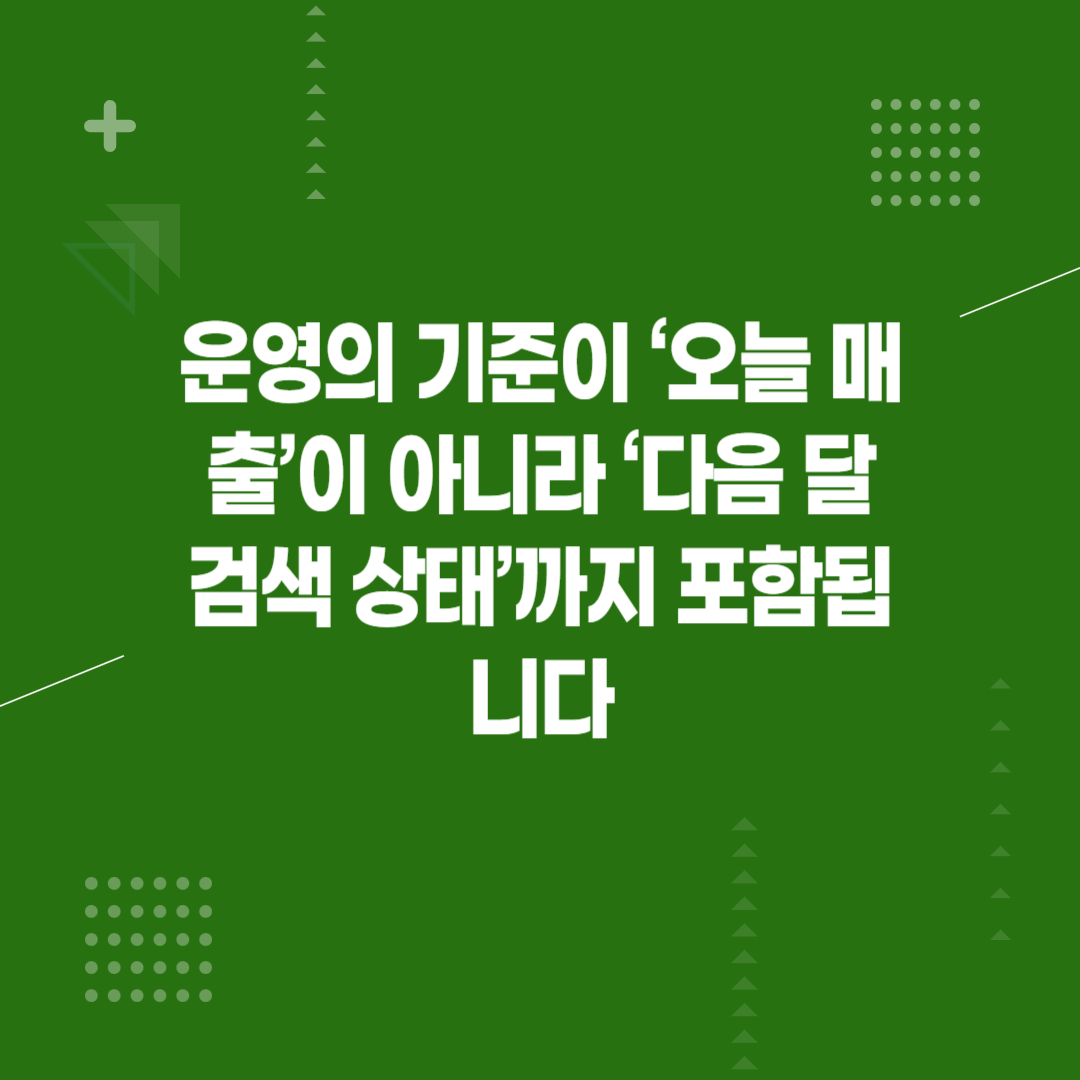 4. 운영의 기준이 ‘오늘 매출’이 아니라 ‘다음 달 검색 상태’까지 포함됩니다