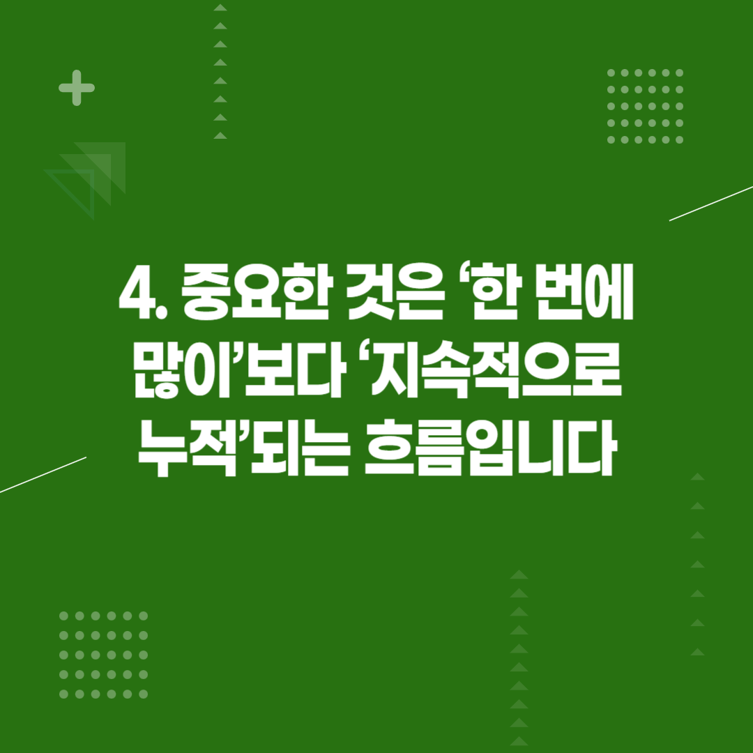 4. 중요한 것은 ‘한 번에 많이’보다 ‘지속적으로 누적’되는 흐름입니다