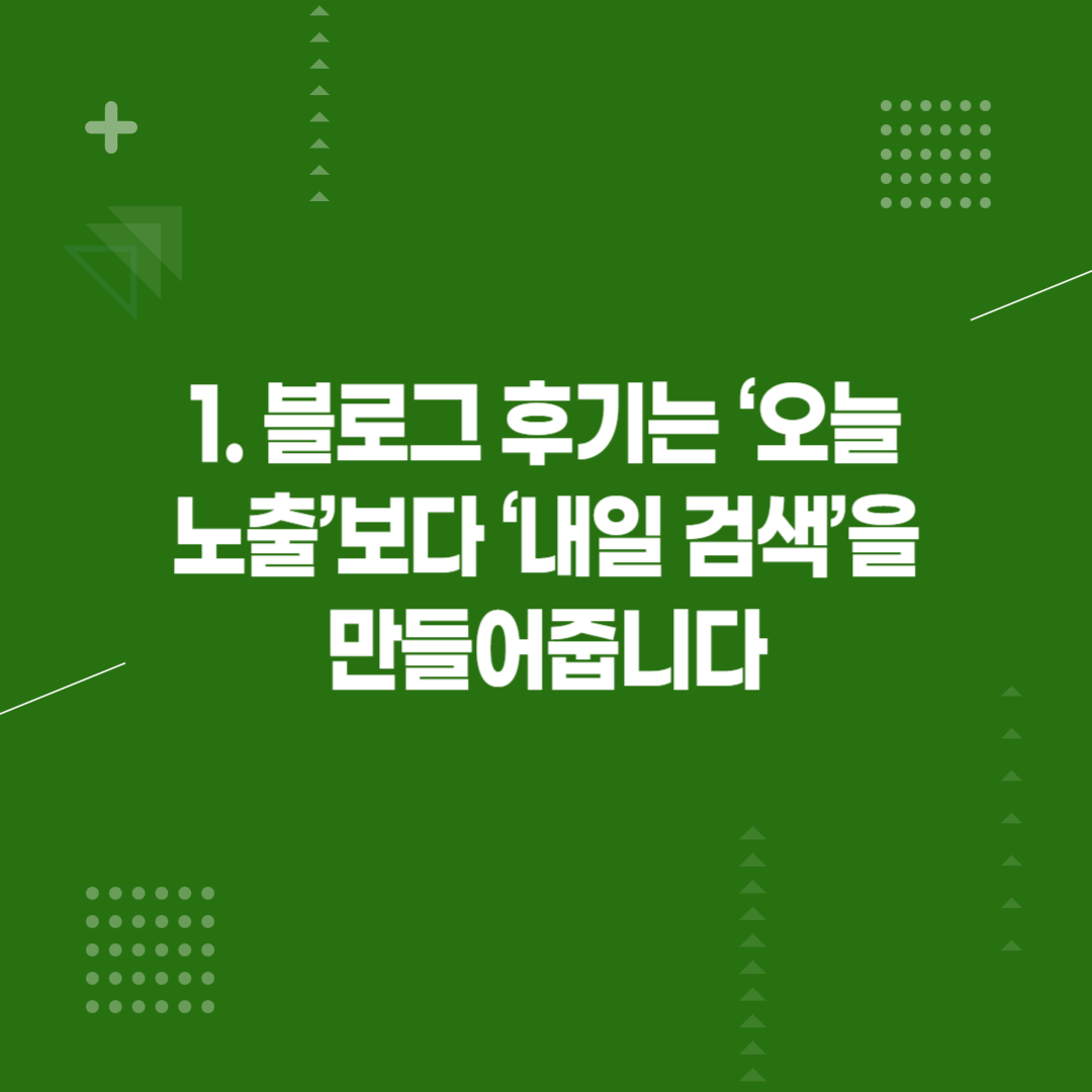 1. 블로그 후기는 ‘오늘 노출’보다 ‘내일 검색’을 만들어줍니다