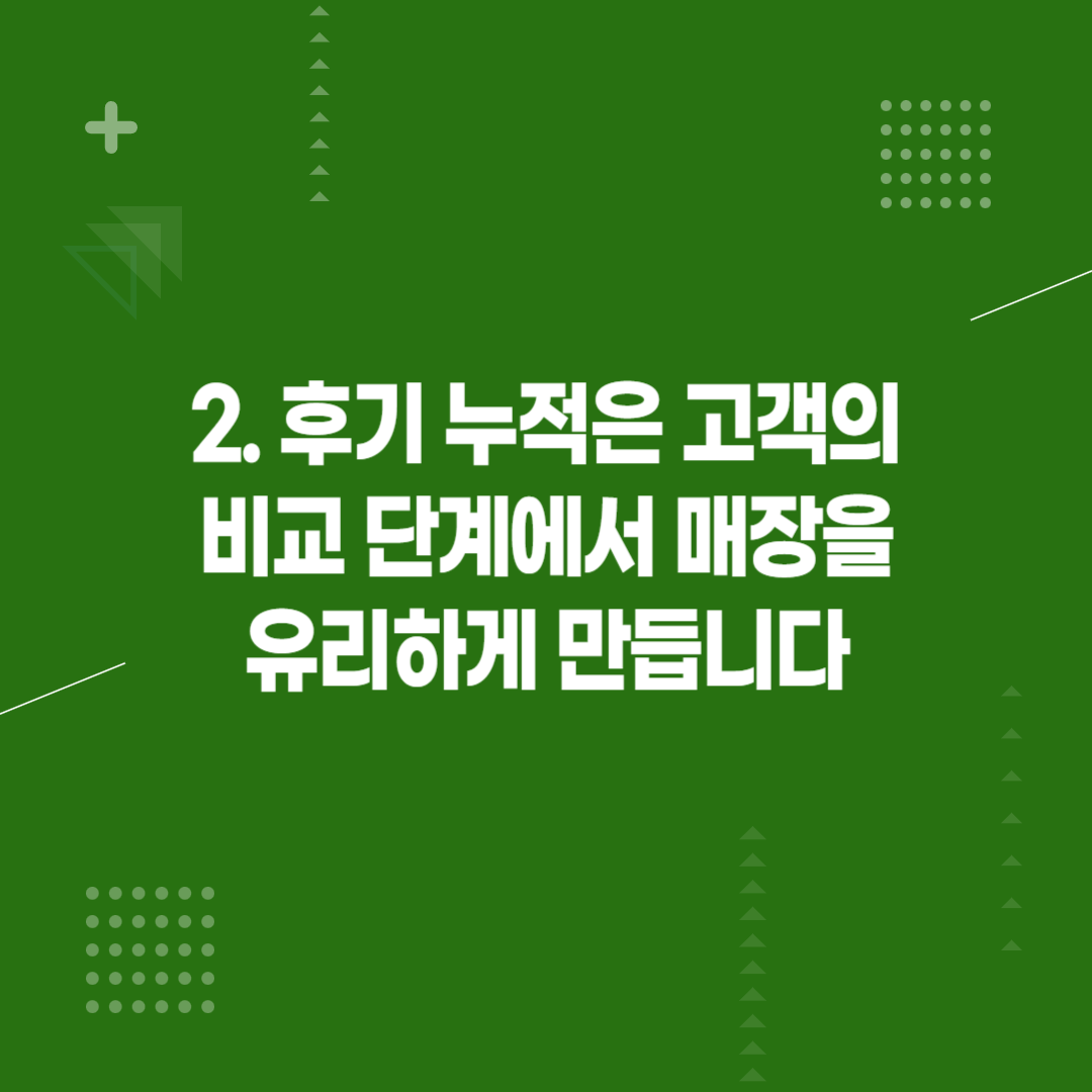 2. 후기 누적은 고객의 비교 단계에서 매장을 유리하게 만듭니다