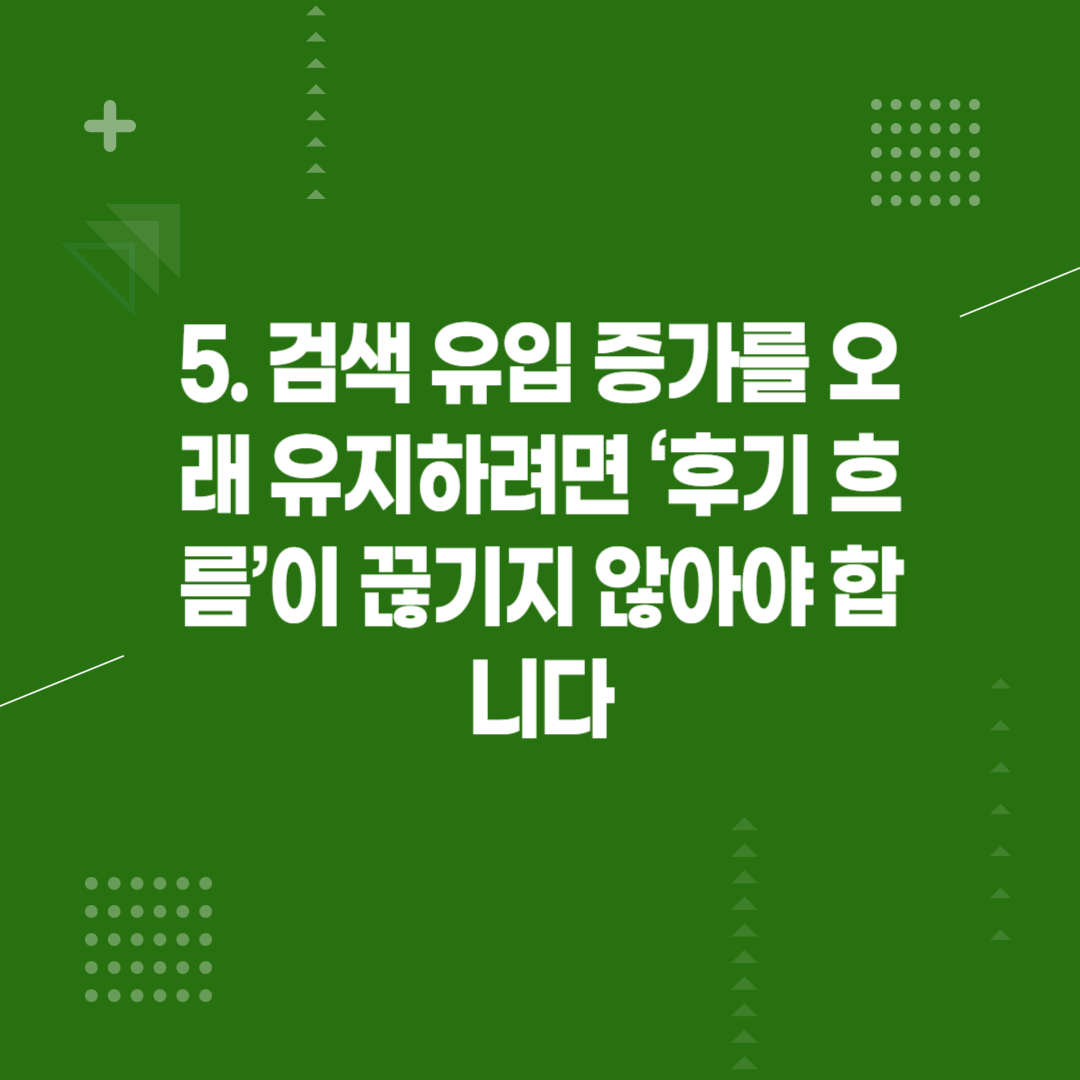 5. 검색 유입 증가를 오래 유지하려면 ‘후기 흐름’이 끊기지 않아야 합니다