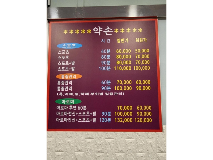 스포츠마사지 or 아로마 or 통증관리 중 택 1 - 제공